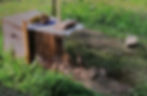 Pendant deux semaines, la poule qui reste dans sa caisse avec des barreaux écartés de 5 cm pour laisser passer les poussins, est à l’abri chez moi. Les poussins, nourris à la farine premier âge, peuvent circuler sur un petit parcours établi autour de leurs caisses. Ensuite, à 15 jours, nous transportons les poules et les poussins au bois. Là, ils ont droit à un petit enclos (grillage et fer à béton) d’où ils peuvent voir leur environnement et les dangers qui les guettent.